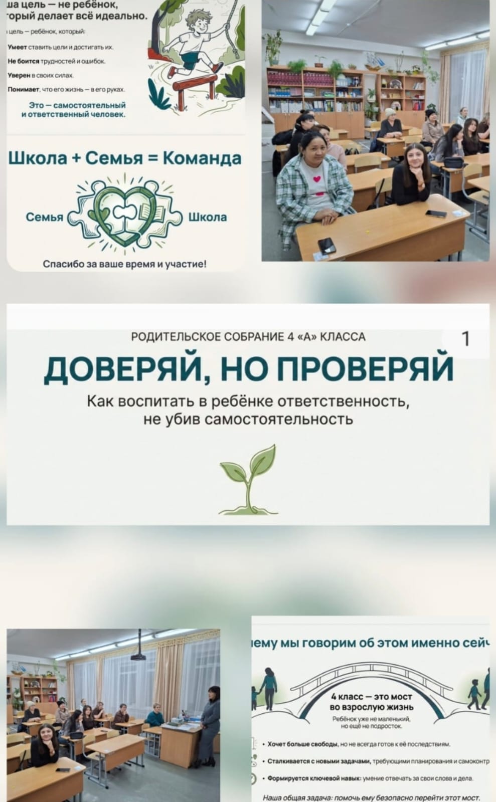 Ата-аналар жиналыстары педагог-психологтар мен мектеп әкімшілігінің қатысуымен өтуде. Олар тәрбиелеу мен оқытуға қатысты өзекті мәселелерді түсіндіріп, балалардың эмоционалдық әл-ауқатын қолдау, ата-ана мен бала арасындағы қарым-қатынасты нығайту және қолайлы білім беру ортасын қалыптастыру бойынша практикалық ұсыныстар береді.