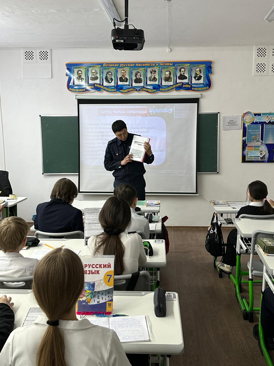 20.01.2026 жылы ОМП «Көліктегі қауіпсіздік» бағдарламасы аясында 5–7 сынып оқушыларына арналған «Тыйым салынған заттарды пайдаланудың жауапкершілігі туралы әңгіме» тақырыбында профилактикалық дәріс өткізілді.