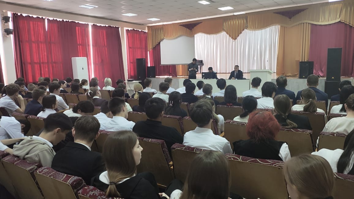 Қостанай қаласы прокуратурасының қылмыстық қудалау бөлімінің прокуроры Мұстафин Шыңғысхан Балабекұлы құқық бұзушылықты алдын алу бойынша, жемқорлық туралы әңгіме жүргізді. Ол құқық бұзушылықтың не екенін және олар үшін қандай жазалар қарастырылатынын айтты. Прокурор нашақорлық пен интернет - алаяқтыққа және жасөспірімдер арасында буллинг жеке тоқталды. Балалар сұрақтар қойды, өмірден мысалдар келтірді, қандай да бір қиын жағдайда қалай әрекет ету керектігі туралы кеңес сұрады. Кездесу соңында мектеп директоры Унайбеков Руслан Буранбайұлы тағы да оқушылардан қырағы болуды және заңға сәйкес өмір сүруді сұрады.