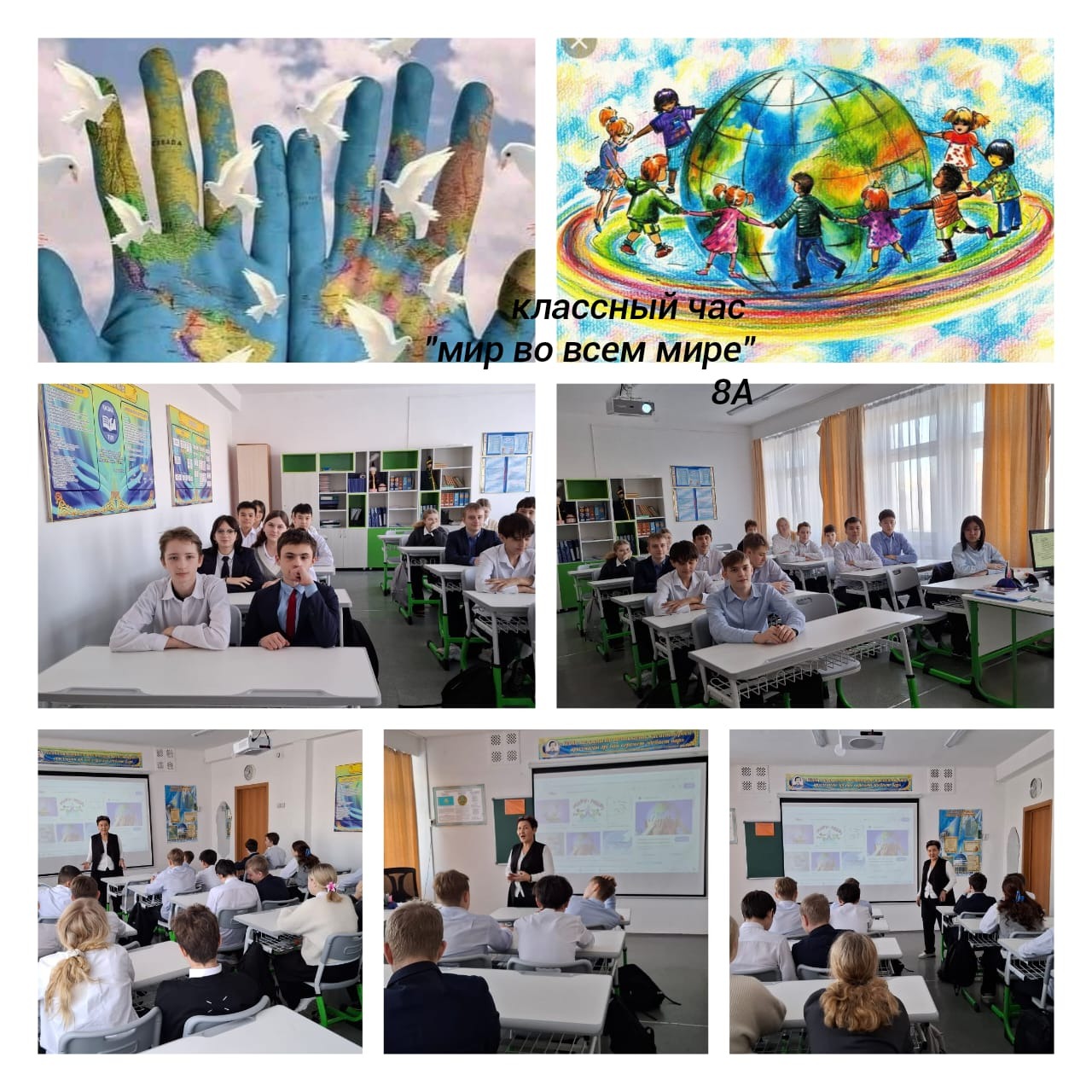 2024 жылғы 20-24-қаңтары аралығында №8 жалпы білім беретін мектепте мектептің жұмыс жоспарына сәйкес "Үлкен әлемдегі бейбітшілік" атты акциясы өтті. Сынып жетекшілері сынып сағаттарын өткізіп, толеранттылық пен достық туралы айтып, ұжымды біріктіруге арналған тренингтер өткізді.