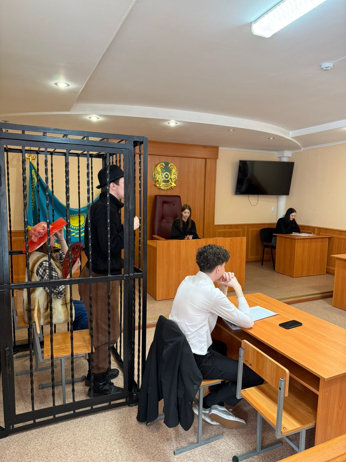 Сот отырысы барысында оқушылар сот процесіне қатысушылардың рөлдерімен, отырысты жүргізу тәртібімен, құқық бұзушылықтар үшін көзделген жауапкершілік шараларымен және заң талаптарын сақтаудың маңыздылығымен танысты. Іс-шара оқушылардың құқықтық санасын арттыруға, өз әрекеттеріне жауапкершілікпен қарауға және заңға құрмет сезімін қалыптастыруға ықпал етті.