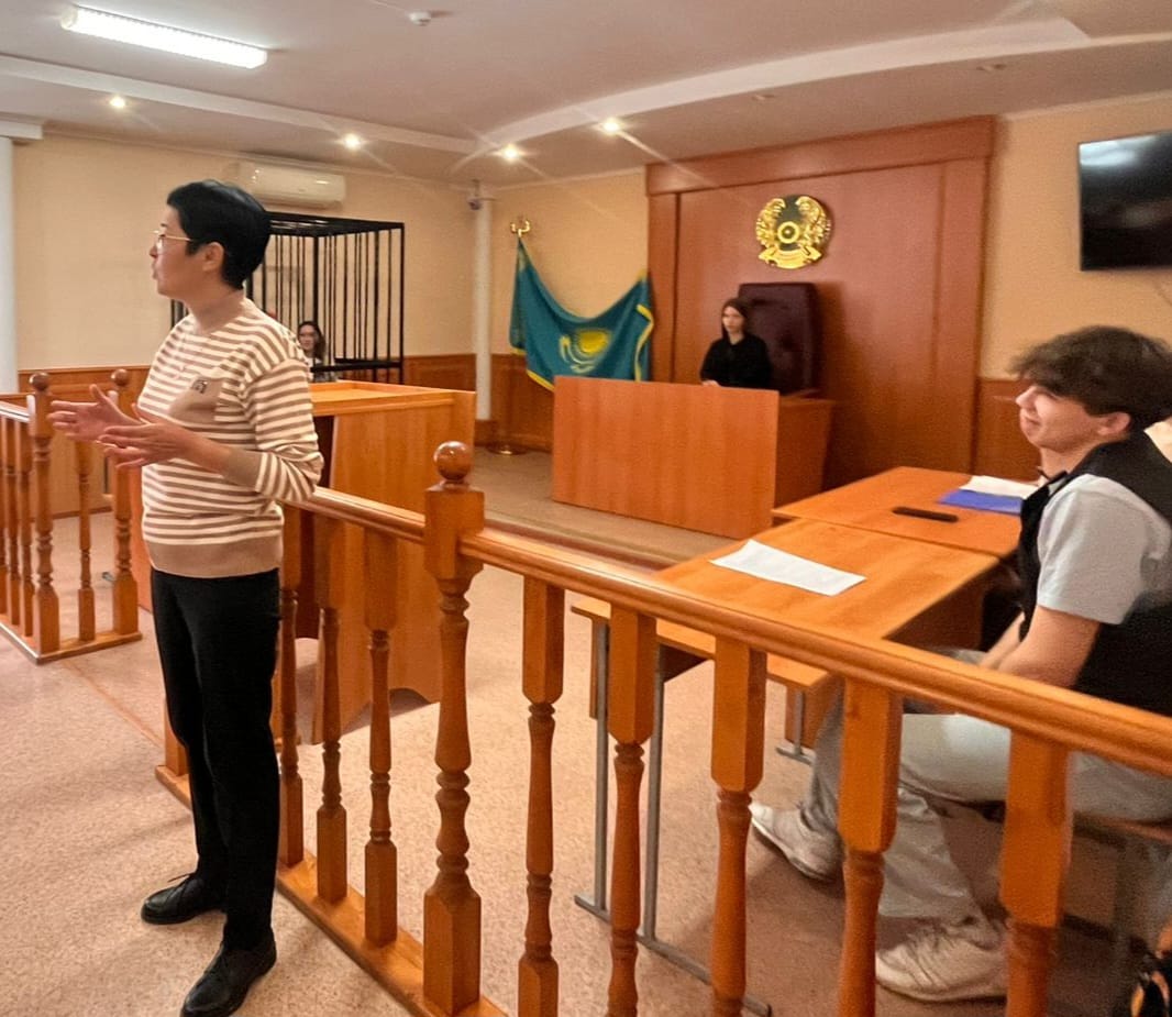 Іс-шара оқушылардың құқықтық мәдениетін қалыптастыруға, кәмелетке толмағандар арасындағы құқық бұзушылықтардың алдын алуға, сондай-ақ сот отырысының өту тәртібімен және кәмелетке толмағандардың қатысуымен қаралатын істердің ерекшеліктерімен таныстыруға бағытталды.
