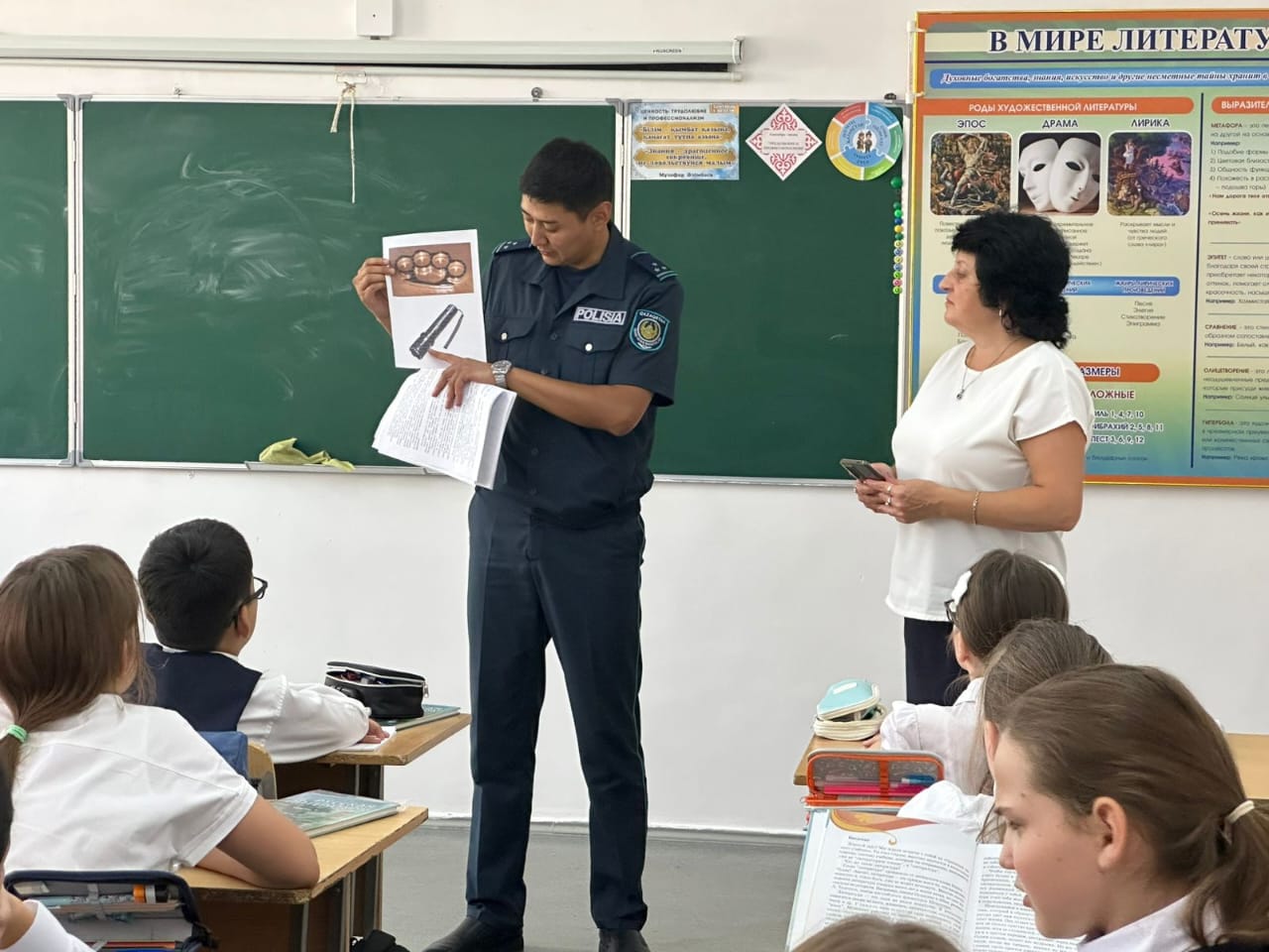 Дәріс барысында инспектор оқушыларға қандай заттардың сақтауға, алып жүруге және пайдалануға тыйым салынғанын, әсіресе білім беру мекемелері аумағында және теміржол объектілерінің маңында түсінікті және қолжетімді түрде түсіндіріп берді. Практикадан нақты мысалдар келтіріліп, мұндай заттарды (мысалы, суық қару, пиротехника, газ баллондары және басқа да қауіпті құралдар) сақтау немесе қолдану үшін қандай құқықтық салдарлар туындайтыны түсіндірілді.
