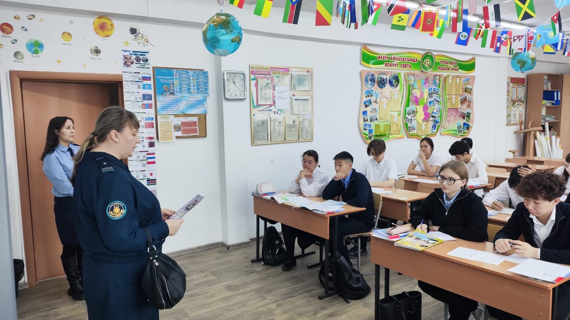 Қостанай қаласы пробация қызметінің мамандары - юстиция майоры Белич А.А. және юстиция капитаны Макжанова Ж.Б. - «Заң және тәртіп» қағидатын іске асыру аясында «Алаяқтық» тақырыбында танымдық кездесу өткізді. Оқушылар алаяқтықтың түрлерін ажырату және өздерін қорғау жолдары туралы маңызды әрі пайдалы ақпарат алды.