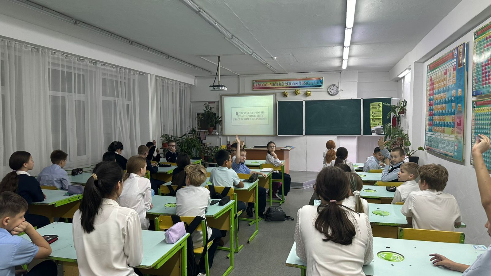 Классный час на тему «Химия наркотиков: влияние на мозг и тело».Ребята прослушали лекцию на тему классного часа, также была проведена дискуссия на вопрос: «Что вы делаете в своей жизни, чтобы оставаться здоровым?».Помимо этого, ребята выполняли групповую работу, а именно подготовка плакатов на тему «Мы за здоровый образ жизни».