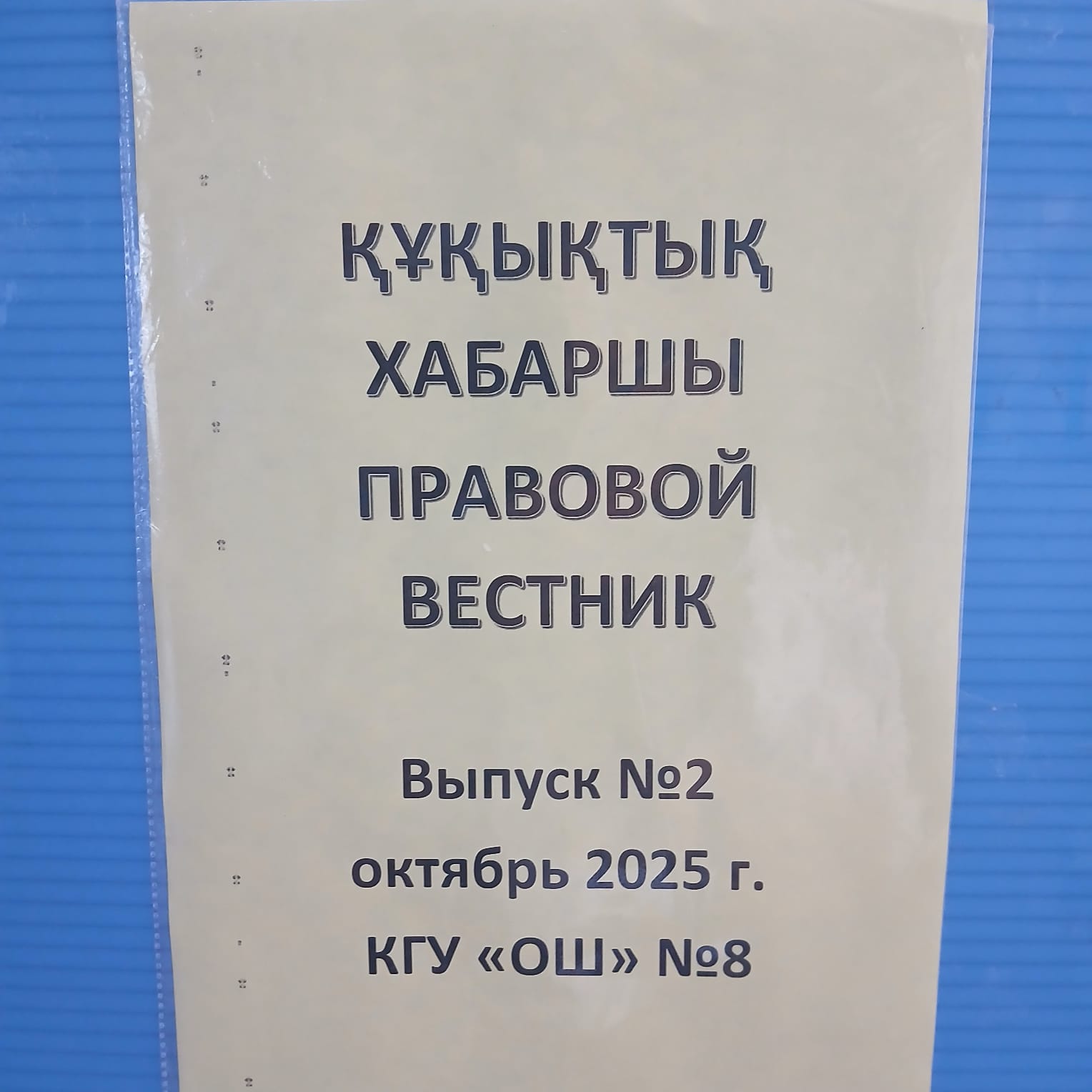 22 октября 2025 года в КГУ «ОШ №8» прошёл правовой вестник «День Республики — символ независимости и государственного становления», организованный Школьным Парламентом «Союзники» под руководством руководителя правовых кружков школы Джумабаевой Зои Есимжановны.